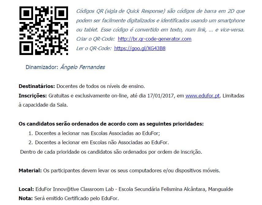 Data de afixação da lista de selecionados: a partir de 18/01/2017, em www.edufor.pt