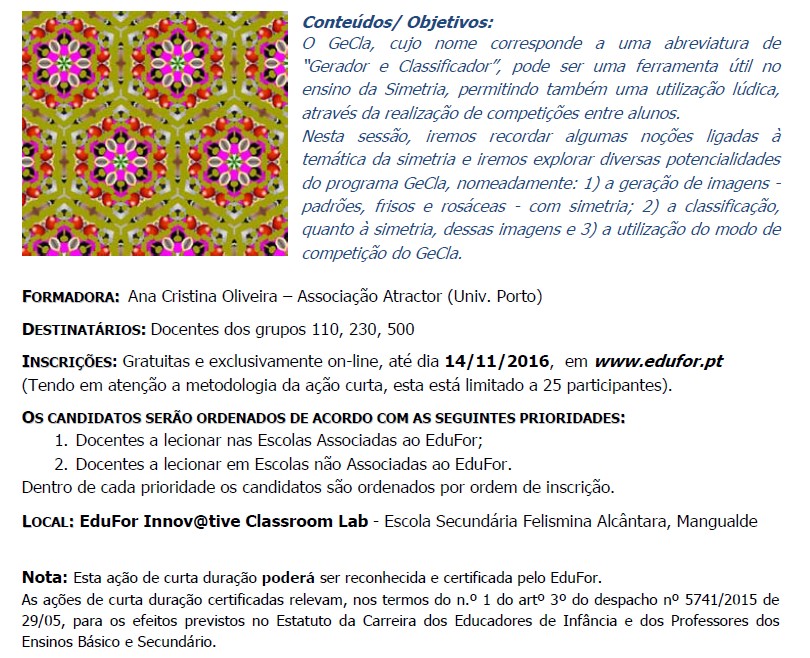Data de afixação da lista de selecionados: a partir de 15/11/2016, em www.edufor.pt